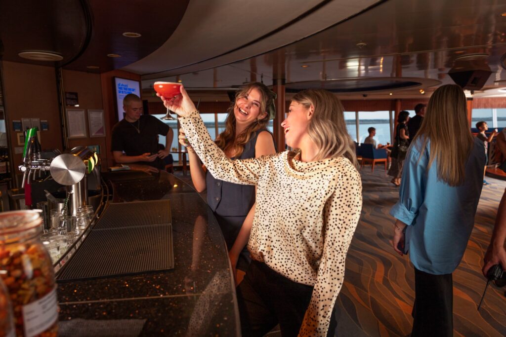 Picture it: you board the ferry in the evening, the sea breeze already lifting your plans out of your head. Before you’ve unpacked your overnight bag, there’s music playing. A theme night kicks off—maybe it’s ‘80s hits, Motown classics, a tribute band, or even a full-on comedy club. You find your seat, grab a drink, and suddenly you’re not just on a ferry—you’re inside an experience.